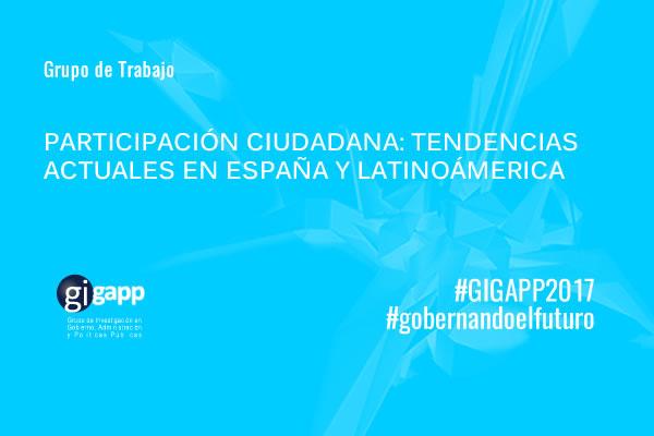 Este Grupo de Trabajo explora este campo e intenta poner de manifiesto las diferentes formas de participación ciudadana que se están llevando a la práctica en Iberoamérica, y así con ello poder tener una imagen real sobre sus perspectivas y su evaluación real en el futuro.